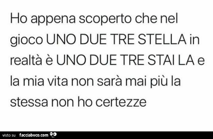 Ho Appena Scoperto Che Nel Gioco Uno Due Tre Stella In Realta E Uno Due Tre Stai Facciabuco Com Giocoso Definition